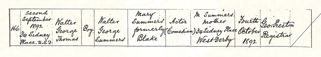 Walter Summers’ birth certificate