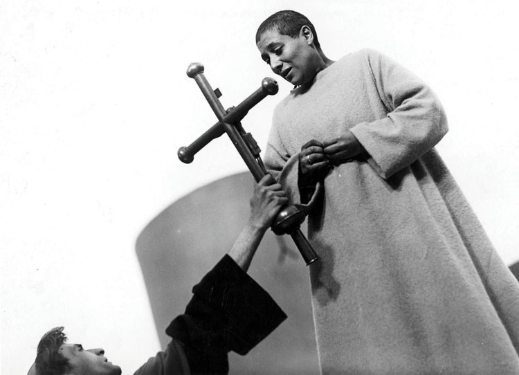 Here, the suffering woman is Joan of Arc, The Maid of Orléans, a young peasant girl who led an army into battle in the hope of driving the English out of 15th-century France. Believing herself to be working under the auspices of three different Saints, Joan was eventually captured, tried and burnt at the stake at the age of 19. It is her trial and execution – her Passion – that Dreyer retells, basing his film upon the transcripts of the actual trial.